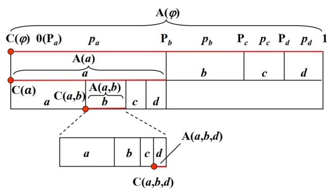 其中符号集 \(A = \{a_1, a_2, \cdots, a_n\}\),\(X \in A\)。显然有 \(p(a_i) \geq 0\),\(\sum_{i = 1}^{n} p(a_i) = 1\)。