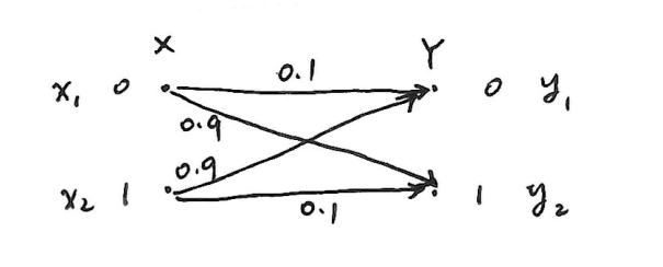 - 即 \(F(y_1) = x_2\),\(F(y_2) = x_1\),则译码错误概率 \(P_e = 0.1\)。