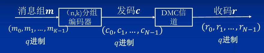 - 信息传输率 \(R=\frac{H(X)}{n}=\frac{\log M}{n}=\frac{k}{n}\text{ bit/符号}\) 。随着 \(n\) 增大,信息传输率减小。思考是否能找到一种编码方法,使 \(P_e\) 充分小,且 \(R\) 维持在一定水平?