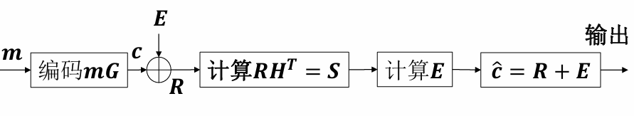 - 其中 \[d = dis(\vec{r_{}},\vec{C_{0}})=w(\vec{r_{}}\oplus\vec{C_{0}})=\sum_{j = 1}^{n}r_j\oplus c_{ij}\] 即 \(\vec{r_{}}\) 与 \(\vec{C_{0}}\) 的汉明距离。