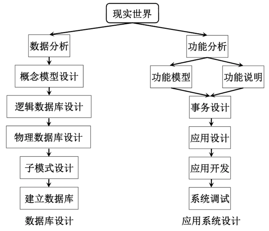 graph TD A[用户] --> B[数据库应用系统] C[用户] --> B D[用户] --> B B --> E[数据库应用开发工具] E --> F[DBMS] F --> G[OS] G --> H[DB] F <--> I[DBA] I --> H H --> J[硬件]