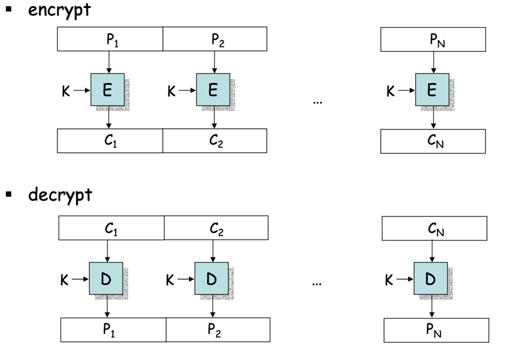 - 例子:明文 “ATTACKATDAWN” ,密钥 “LEMON” ,加密过程如下: \[ \begin{aligned} Plain: & \mathtt{A T T A C K A T D A W N} \\ Key: & \mathtt{L E M O N L E M O N L E} \\ Cipher: & \mathtt{L X F O P V E F R N H R} \end{aligned} \]