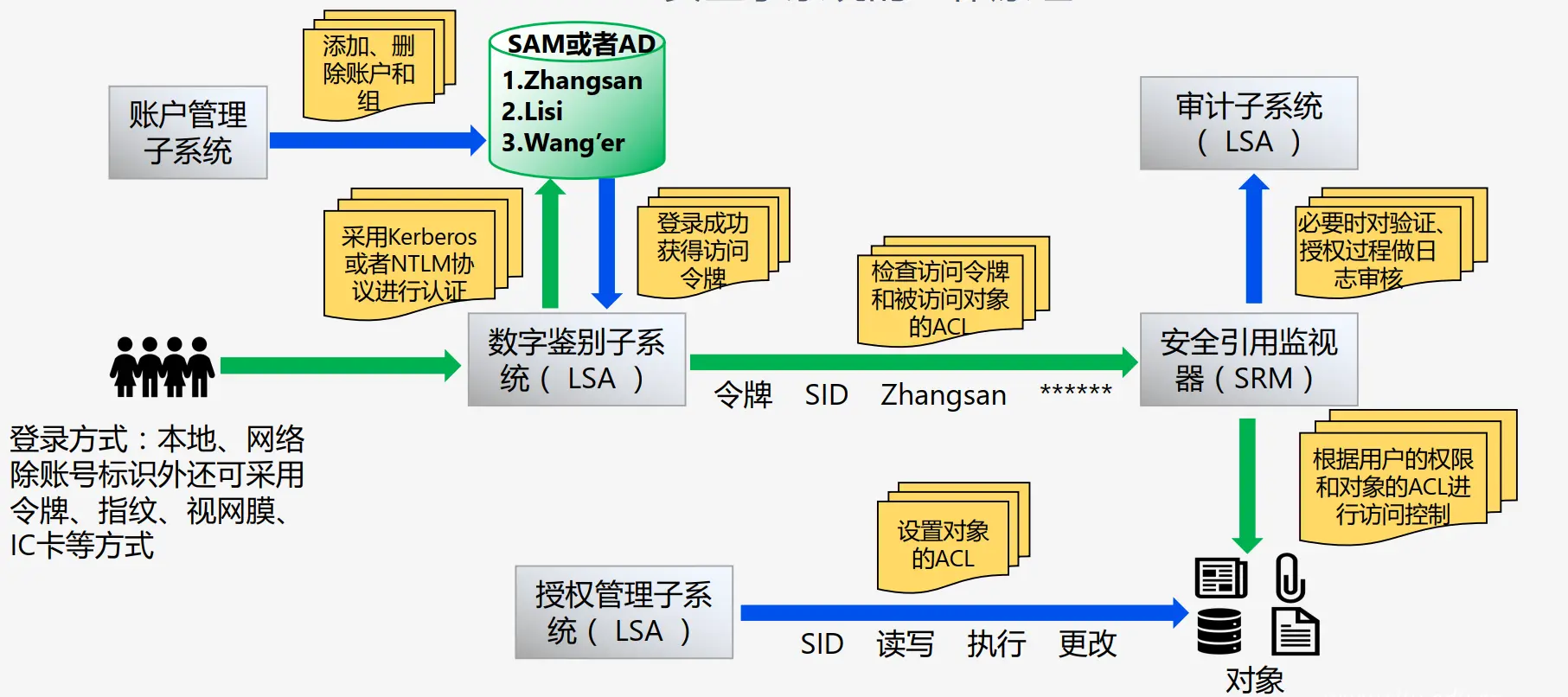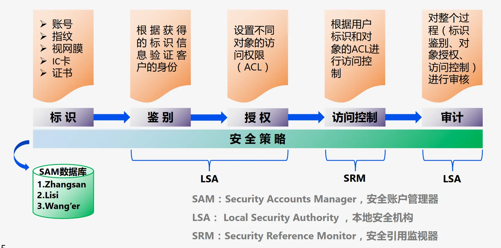 - 授权:根据访问主体身份和职能分配权限,限制合法访问范围。