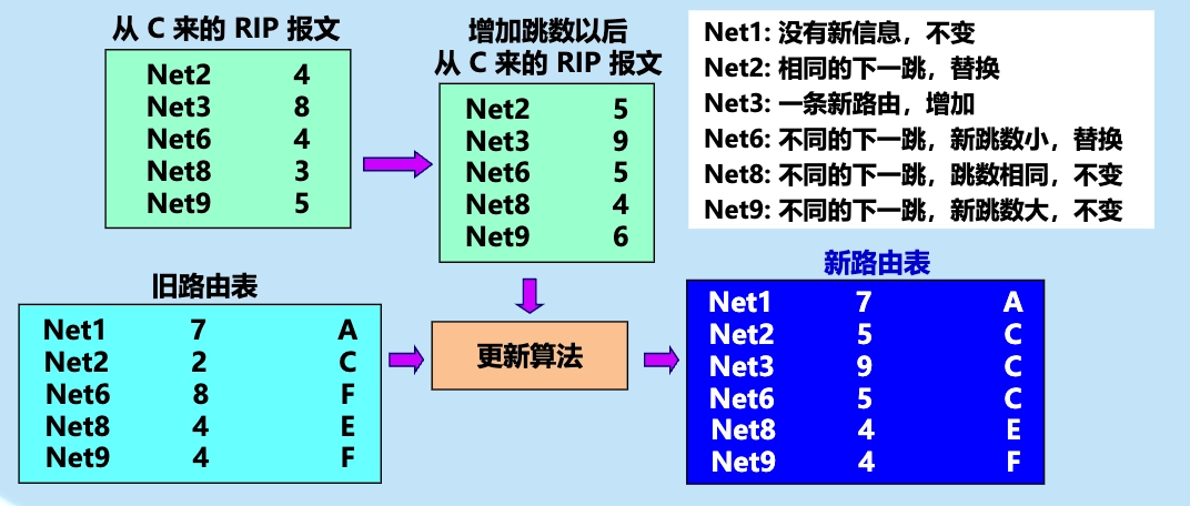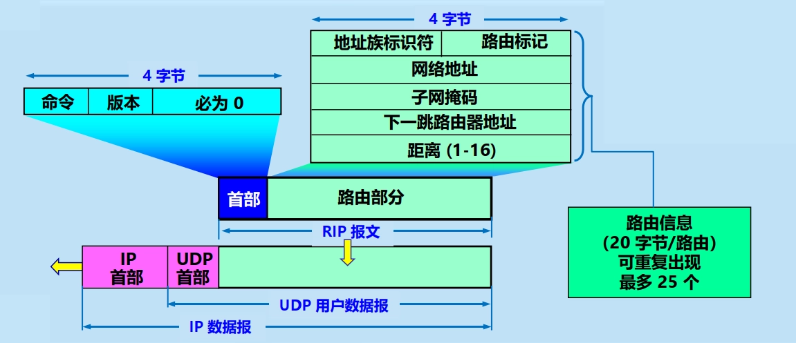 - RIP(路由信息协议):基于 UDP,无连接,距离矢量型内部网关协议,以“跳数”为度量值计算最优路径,配置简单,适用于小型局域网。