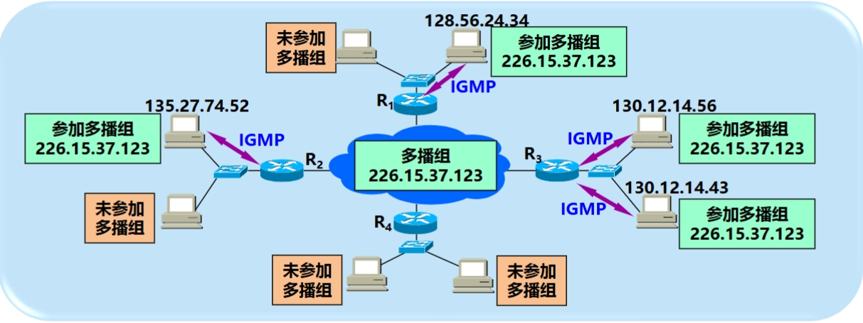 - IGMP(网际组管理协议):无连接,IP 多播组管理协议,用于主机与路由器之间的多播组成员关系维护,支持多播数据的高效传输。