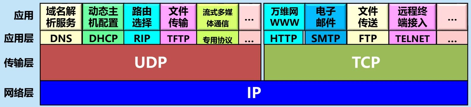 - UDP(用户数据报协议):无连接,无连接的不可靠传输协议,仅对应用层数据做简单封装,开销小、传输效率高,适用于实时性要求高的场景。