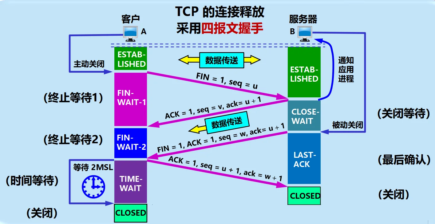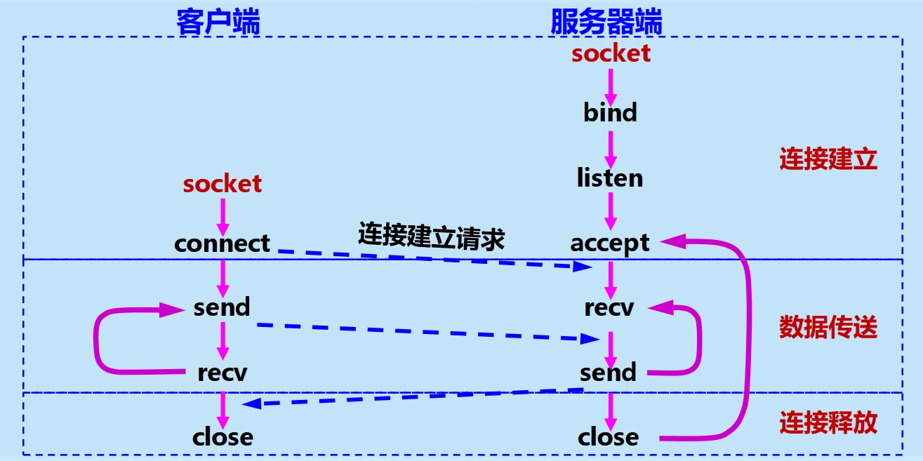 - 客户与服务器的通信关系建立后,通信可以是双向的,客户和服务器都可发送和接收数据。