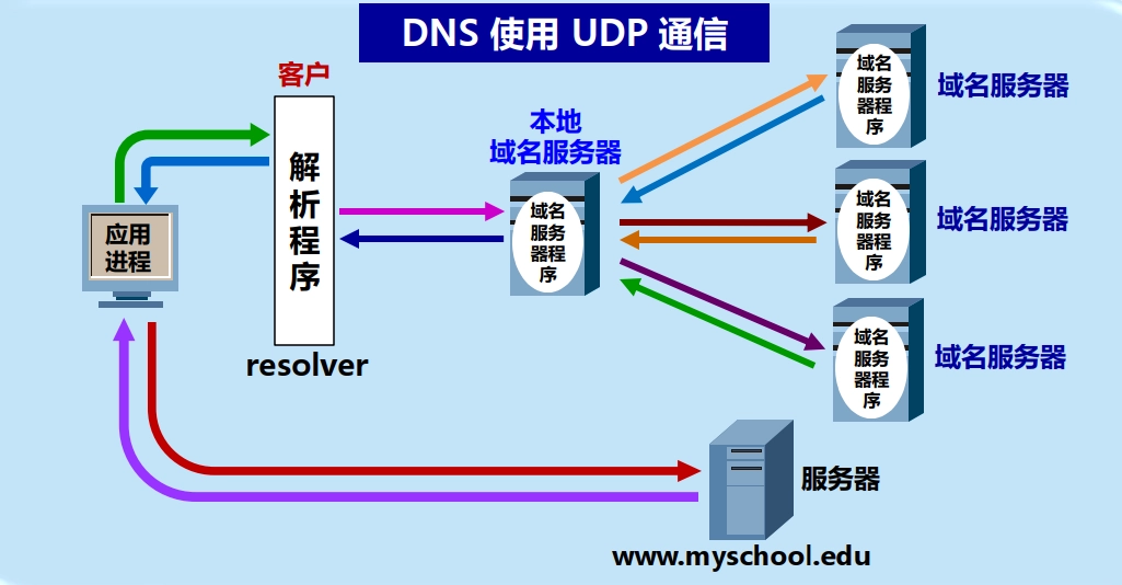 - DNS(域名系统):基于 UDP/TCP,无连接/有连接,互联网的核心域名解析协议,默认使用 UDP 实现快速域名到 IP 的映射,大报文查询时使用 TCP 保证可靠性。