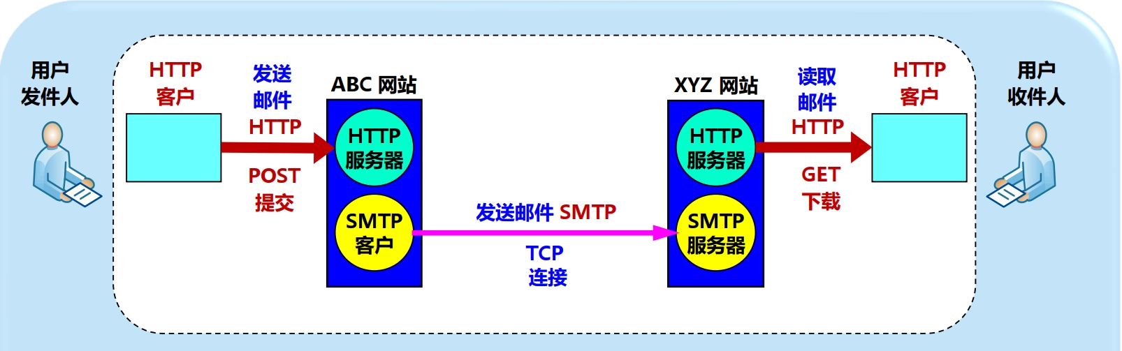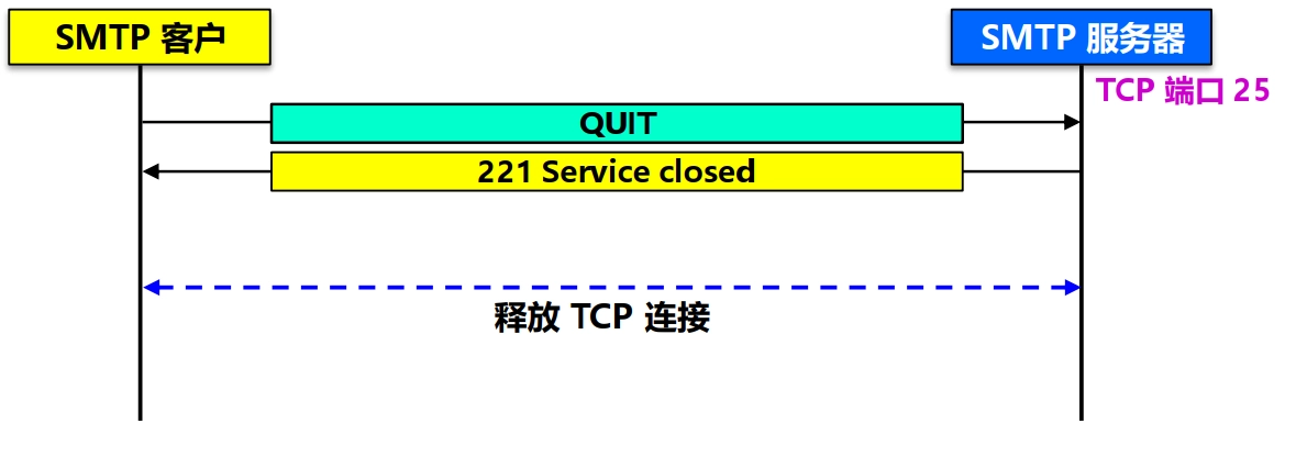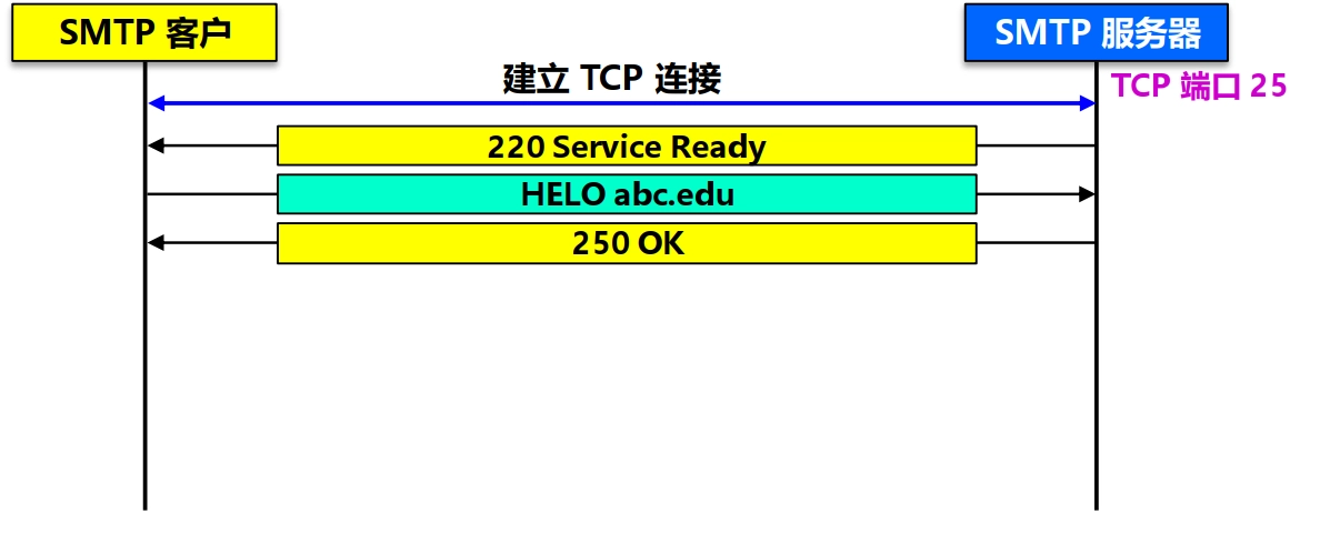 - SMTP(简单邮件传输协议):基于 TCP,有连接,电子邮件发送协议,负责将邮件从客户端发送到邮件服务器,或在服务器之间转发邮件。