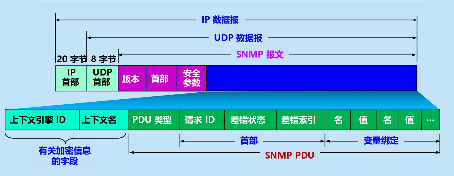 - SNMP(简单网络管理协议):基于 UDP,无连接,网络设备管理协议,通过 Get/Set/Trap 等操作实现对网络设备的监控、配置和告警,适用于路由器、交换机等设备的管理。