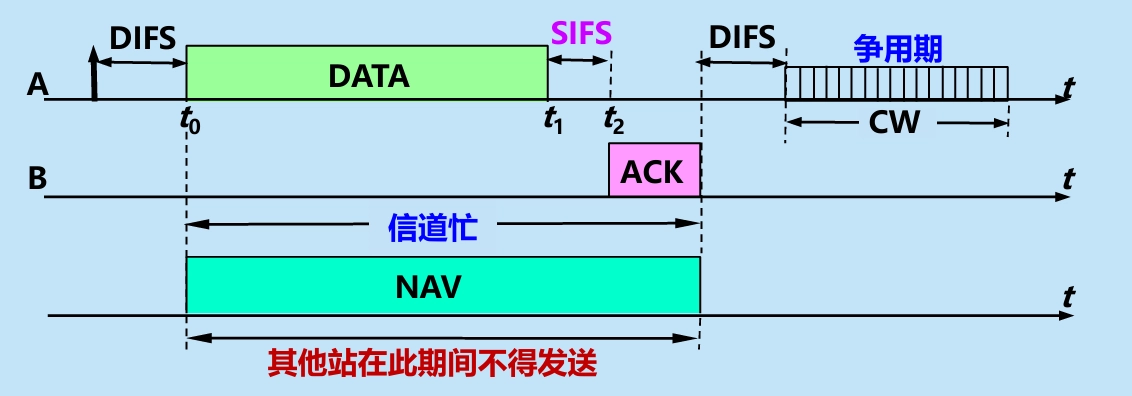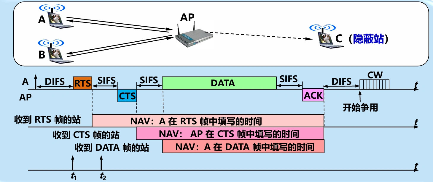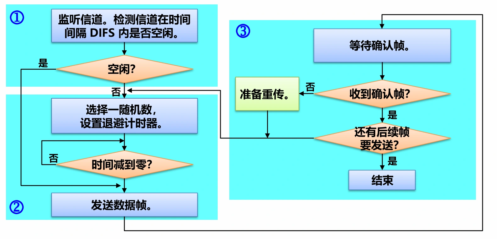 - CSMA/CA(载波监听多路访问/碰撞避免):无线局域网的核心介质访问控制机制,通过“预约信道、ACK 确认”等方式避免无线环境的冲突,适配 Wi-Fi(IEEE 802.11)协议。