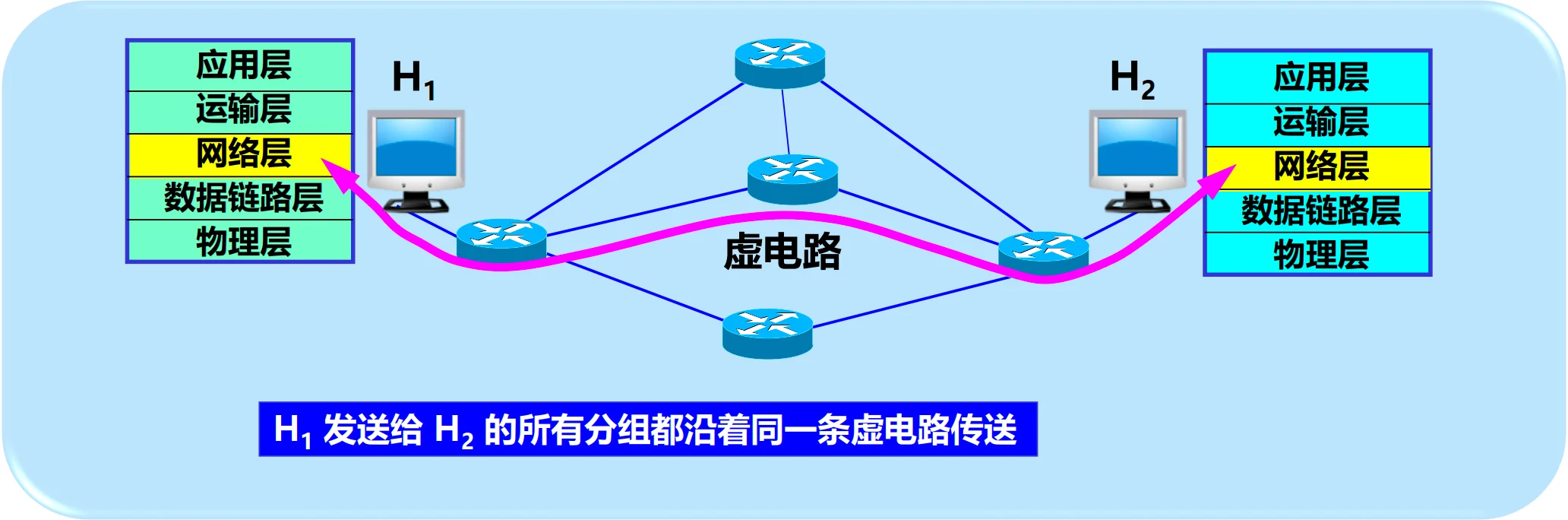 - 有连接:电话交换机接通电话线的方式,直接进行两两连接,因此 \(N\) 台计算机就需要 \(\frac{N(N-1)}{2}\) 对电线。