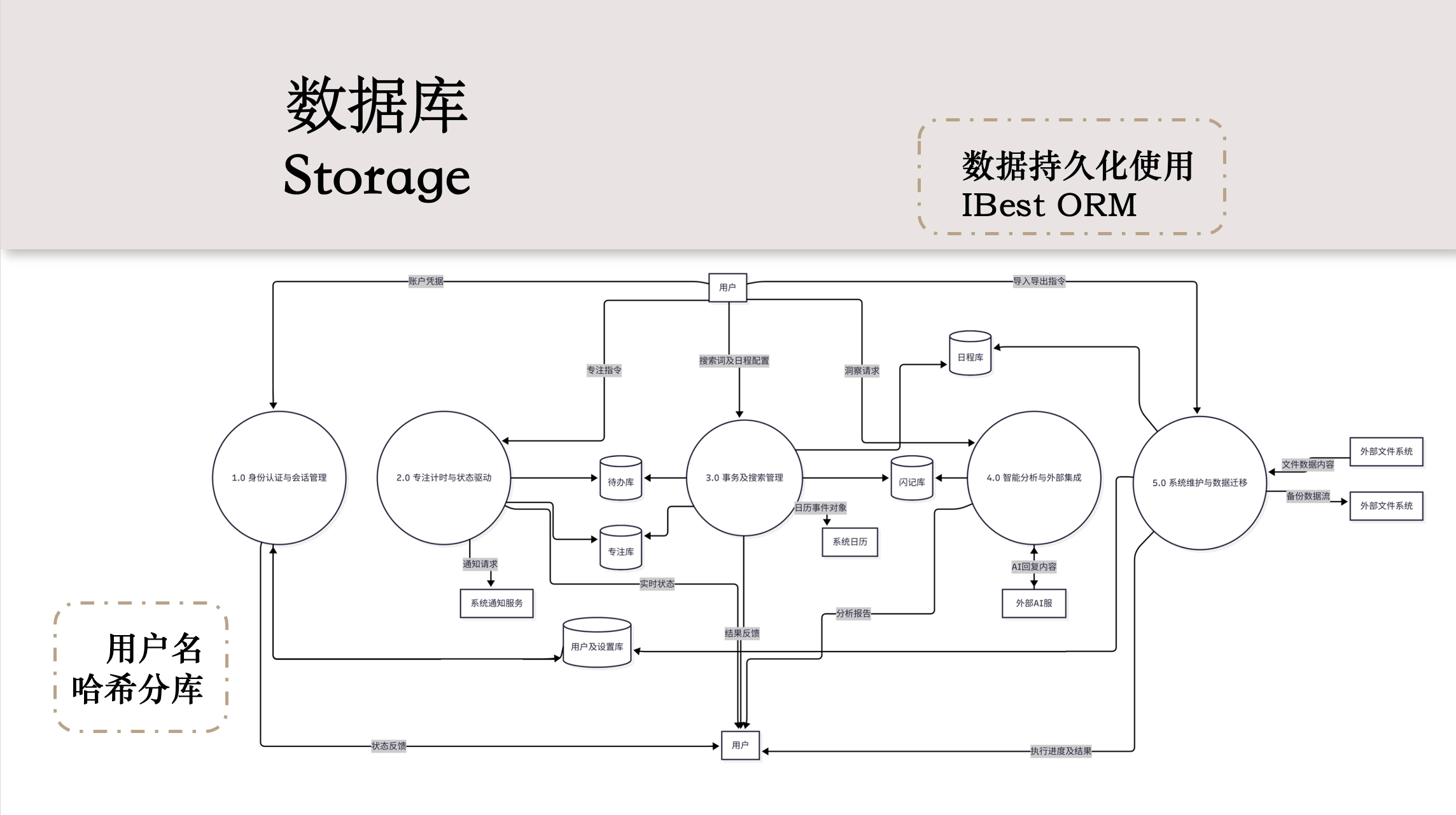 在个人中心页面,除了基础的账户管理,我们还实现了数据看板以及导入导出功能。用户可以清晰地看到自己在每周的专注时长,也能看到闪记数据,帮助他们更好地了解自己的效率习惯。同时,我们也提供了数据导入导出功能,方便用户备份或在不同设备或平台间迁移数据,确保他们的生产力资产不会被锁定在某个应用中。值得一说的是,我们采用基于用户维度分库的