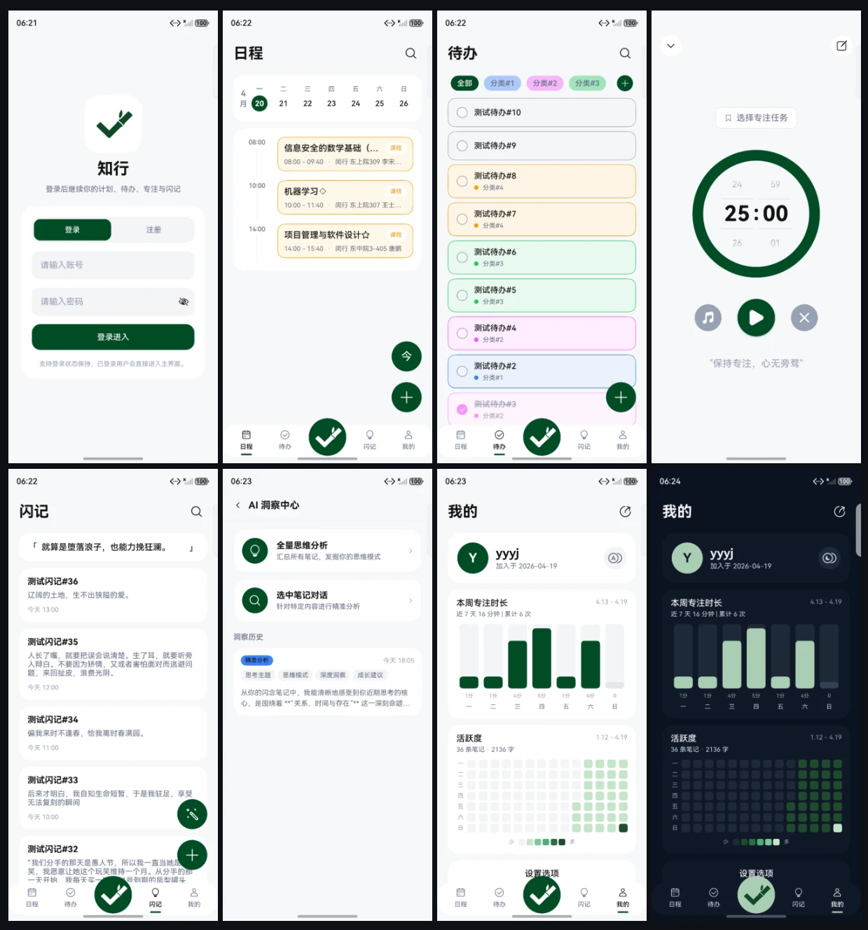 - 功能完善:在现有功能的基础上,继续迭代优化用户体验,并增加更多实用的功能模块,如日程的周期性任务、待办的优先级与截止日期设置、闪记的多媒体与 Markdown 渲染支持、AI 洞察的 API 自主配置、用户头像自定义、账户名称及密码修改等。