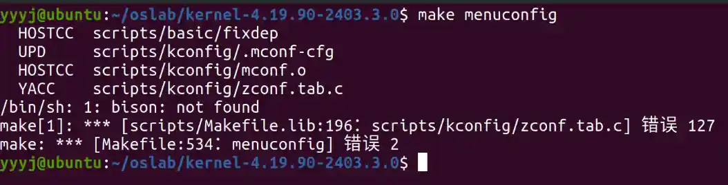 sudo apt install libncurses5-dev使用以下命令对配置进行需要的更改,根据提示需先安装相应的依赖,不同的包在不同 Linux 发行版下名称不同。
