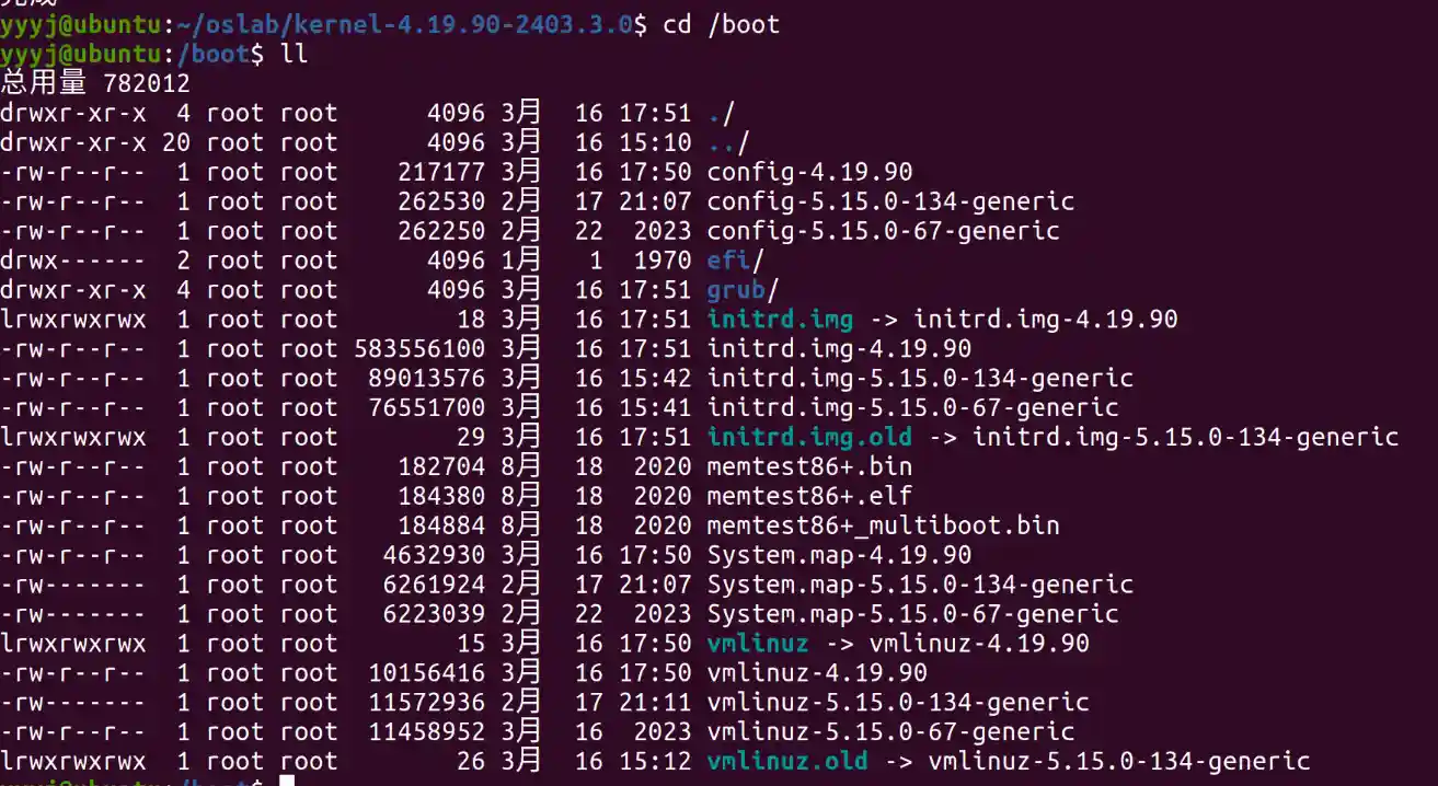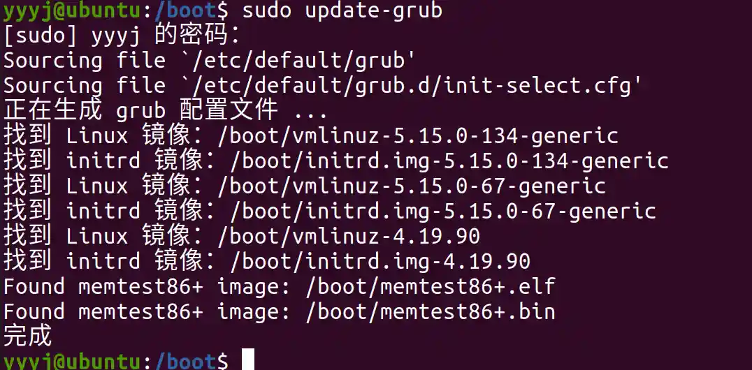 - 完成安装,在 /boot 下看到新安装的内核
